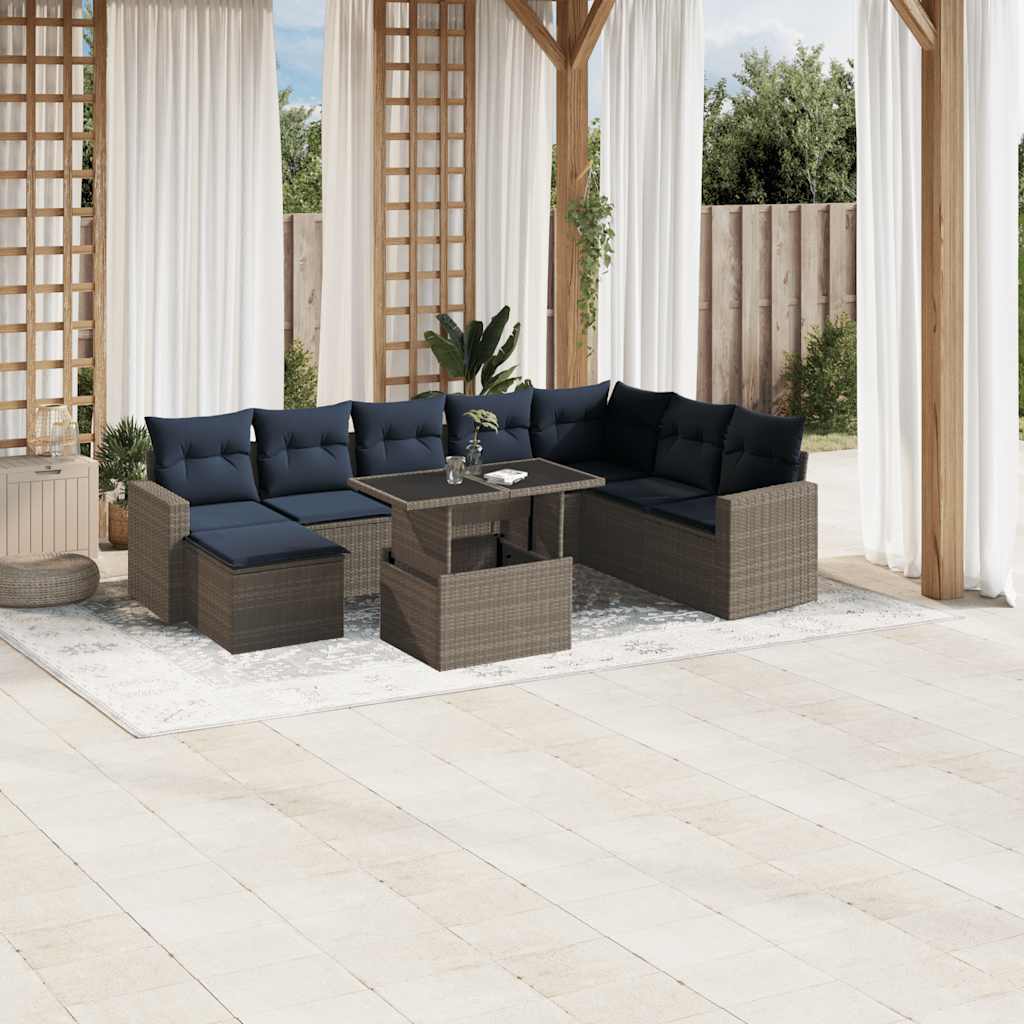 vidaXL 9-delige Loungeset met kussens poly rattan acacia bruin