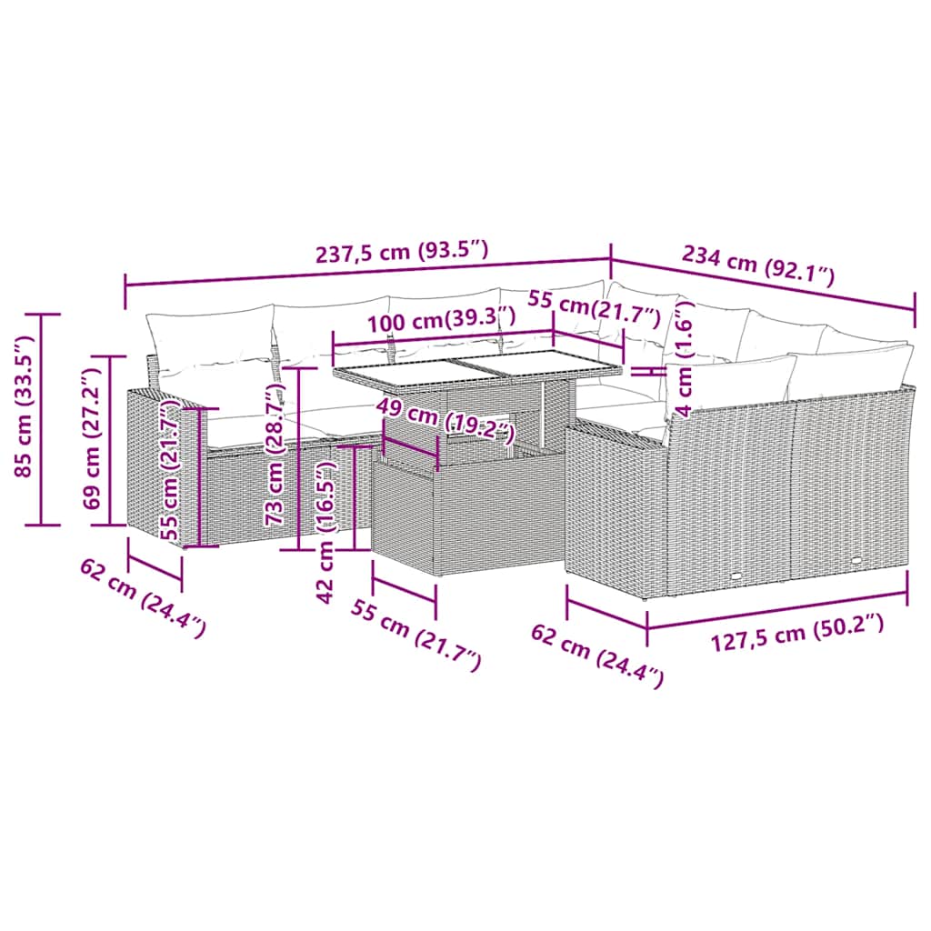 - Modulair ontwerp: deze tuinmeubelset heeft een modulair ontwerp, waardoor hij volledig flexibel en gemakkelijk te verplaatsen is. Op die manier kun je een opstelling van tuinmeubilair creëren.
