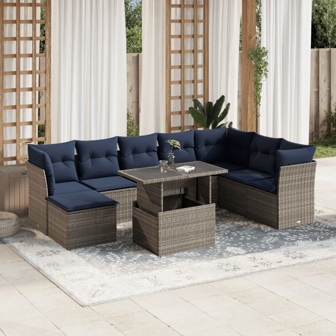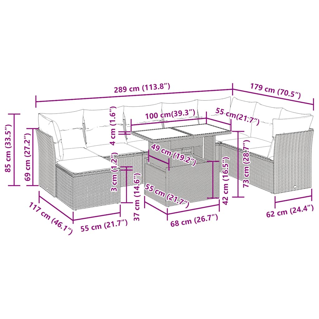 vidaXL 9-delige Loungeset met kussens poly rattan acacia grijs