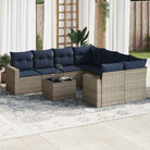 vidaXL 9-delige Loungeset met kussens poly rattan grijs