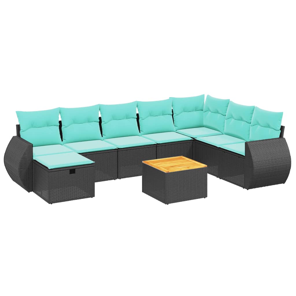 vidaXL 9-delige Loungeset met kussens poly rattan zwart
