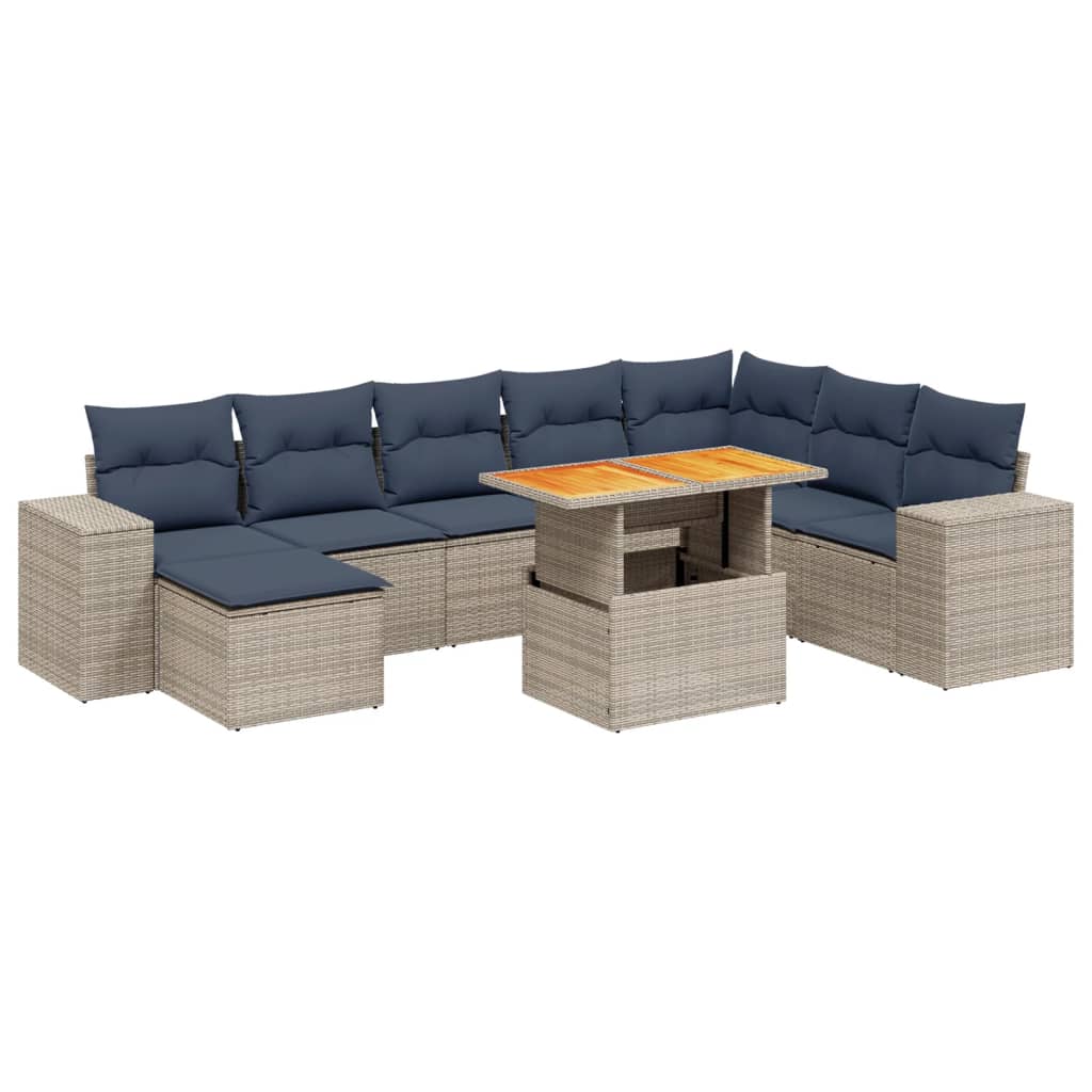 vidaXL 9-delige Loungeset met kussens poly rattan zwart