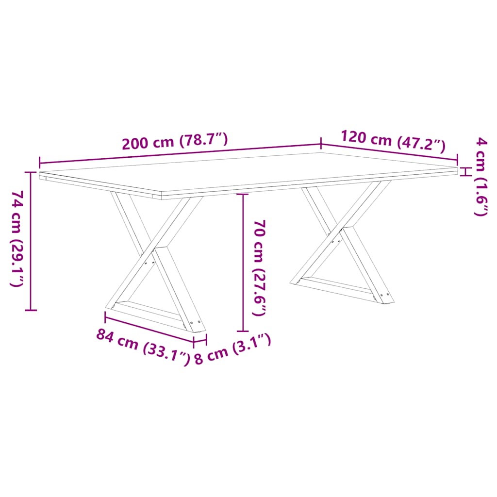 - Het tafelblad heeft een dikte van 4 cm langs de randen voor een robuuste uitstraling en een dikte van 2 cm in het midden om het houtverbruik en het totale gewicht te verminderen.