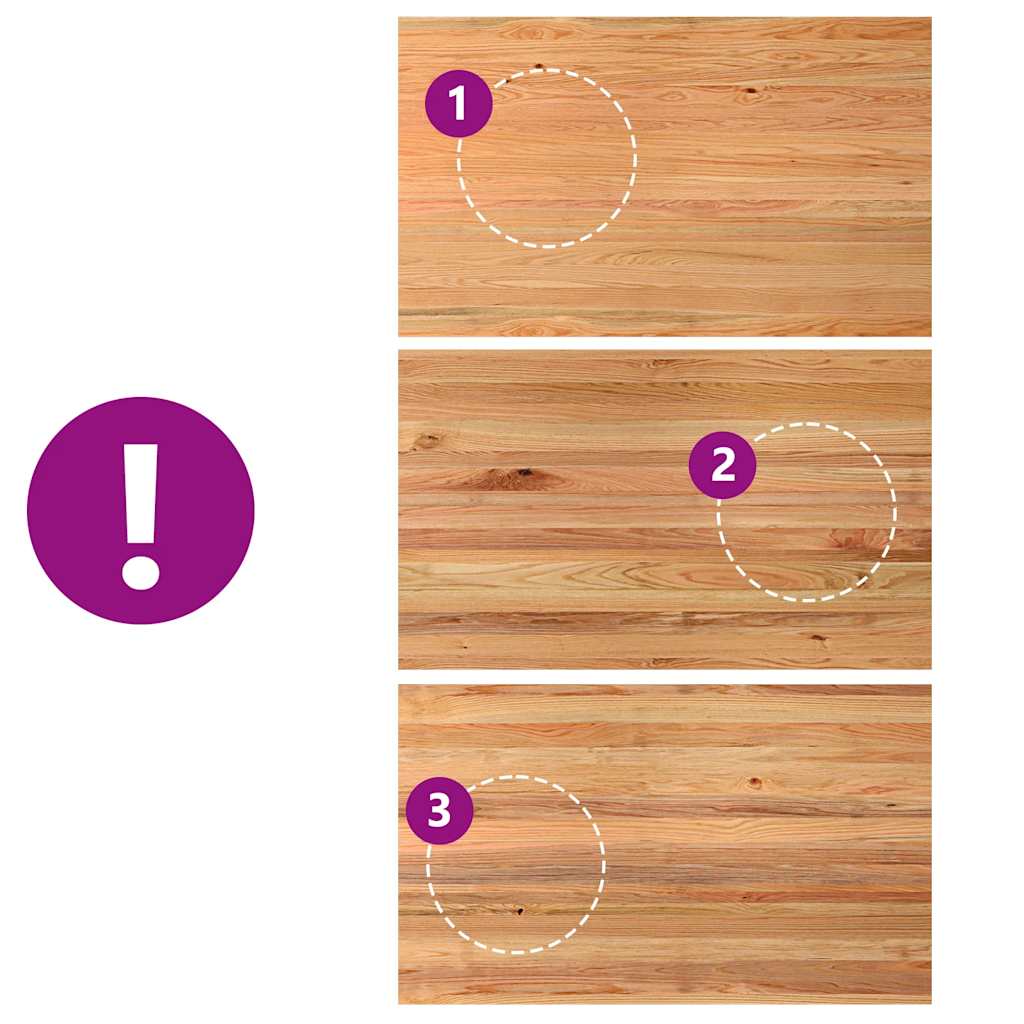 - Noesten en kleine gebreken zijn opgevuld met zwart vulmateriaal om een mooi en glad tafeloppervlak te geven. Raadpleeg de afbeeldingen voor voorbeelden.