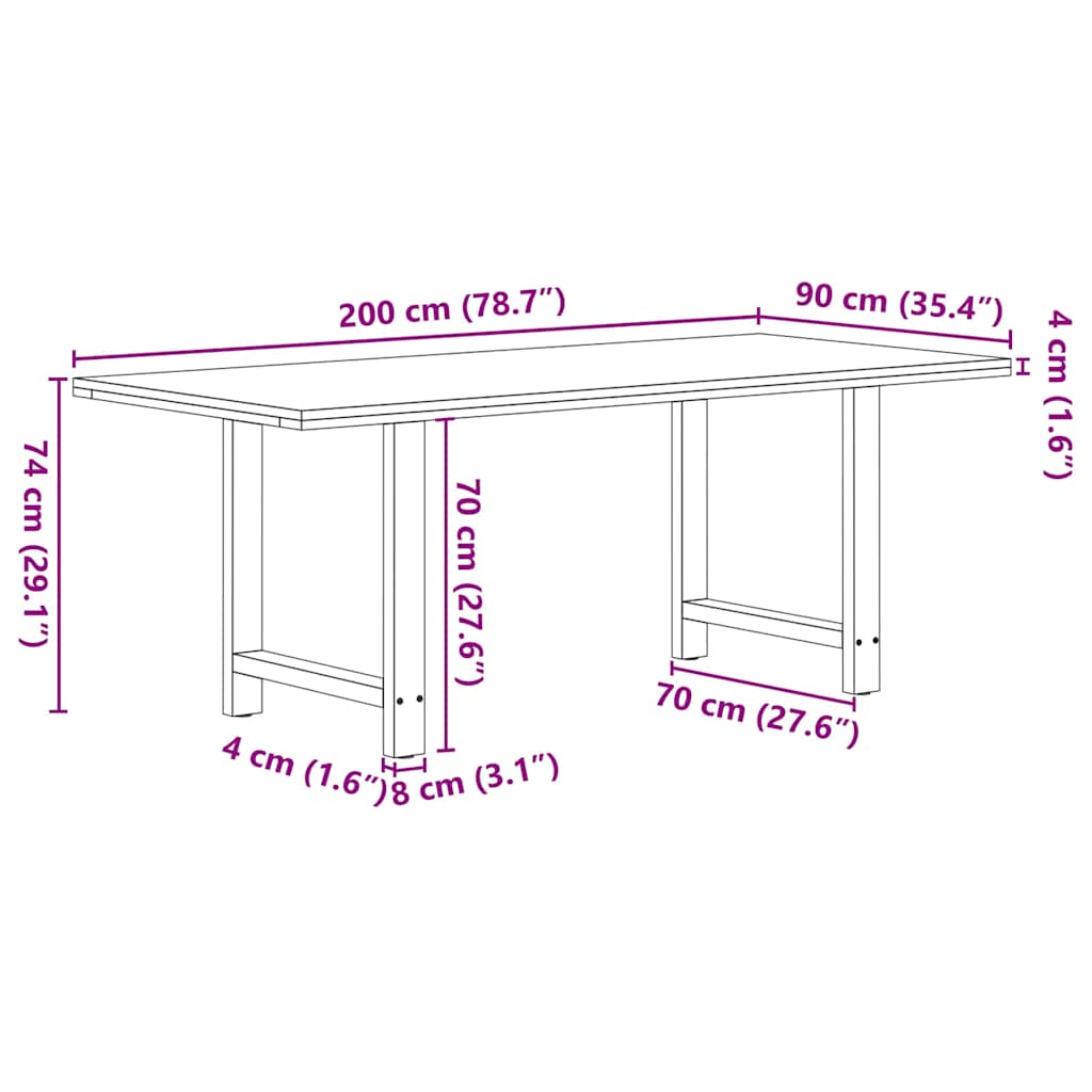 - Het tafelblad heeft een dikte van 4 cm langs de randen voor een robuuste uitstraling en een dikte van 2 cm in het midden om het houtverbruik en het totale gewicht te verminderen.