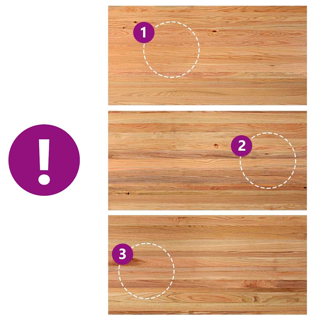 - Noesten en kleine gebreken zijn opgevuld met zwart vulmateriaal om een mooi en glad tafeloppervlak te geven. Raadpleeg de afbeeldingen voor voorbeelden.