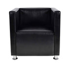 Deze kuipstoel heeft een klassiek design, kunstleren bekleding en hoogwaardige metalen poten om hem naadloos te laten opgaan in elk interieur.