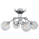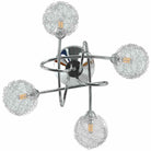 Deze unieke plafondlamp met 4 glazen kappen die zijn omwikkeld in aluminium gaasdraad, heeft een modern ontwerp en geeft je kamer een prachtige uitstraling.