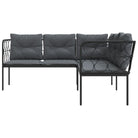 vidaXL Tuinbank met kussens L-vormig staal en textileen zwart
