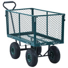 Deze tuinwagen is gemaakt van robuust staal en is buitengewoon stabiel en duurzaam. Dankzij het laadvermogen van 350 kg kan je met de trolley gemakkelijk bloemen, bladeren, houtblokken en andere spullen vervoeren. De zijpanelen kunnen worden geopend met de snelsluitingen voor eenvoudig laden en lossen. Bovendien kan je met de grote, robuuste, pneumatische wielen moeiteloos de trolley over oneffen terreinen verplaatsen. De gevoerde handgreep biedt een stevige grip.