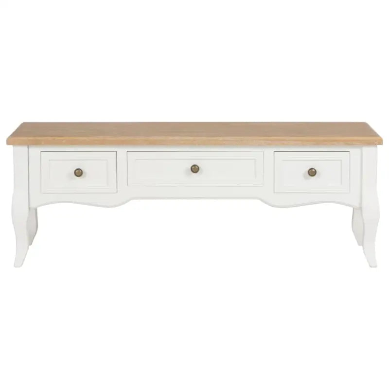 Voeg een vleugje elegantie toe aan je woonkamer met ons klassieke tv-meubel! Deze standaard in Franse stijl is uitgerust met 3 lades voor voldoende opbergruimte. Hij zal zowel een praktische als een decoratieve aanvulling zijn op je woonkamer of slaapkamer.