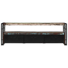 De hifi-kast is gemaakt van massief gerecycled hout dat afkomstig is van balken, vloeren en steunbalken van oude gebouwen die zijn afgebroken en kan bestaan uit verschillende soorten hout, zoals grenen, teak, beuken, eiken, ceder, mangohout en acacia. Dit betekent dat het hergebruikte hout de kenmerken van deze verschillende houtsoorten heeft. Hergebruikt hout is al verouderd, verweerd en gedroogd, dus het krimpt en buigt niet. De prachtige houtnerven maken elk meubel uniek en enigszins anders dan de rest. Tekenen van slijtage en de zichtbare nerfstructuur geven elke kast een eigen geschiedenis en een unieke uitstraling. Elke stap van het proces wordt met de grootste zorg uitgevoerd, of het polijsten, schilderen of lakken is. De tv-eenheid heeft 3 lades voor het opbergen van snuisterijen en 1 schap om multimedia-apparaten, gameconsoles en tijdschriften op te bewaren. De stalen poten dragen bij aan de stevigheid en stabiliteit van de kast en geven hem een industriële stijl. Dit product is al gemonteerd; er is geen montage vereist.