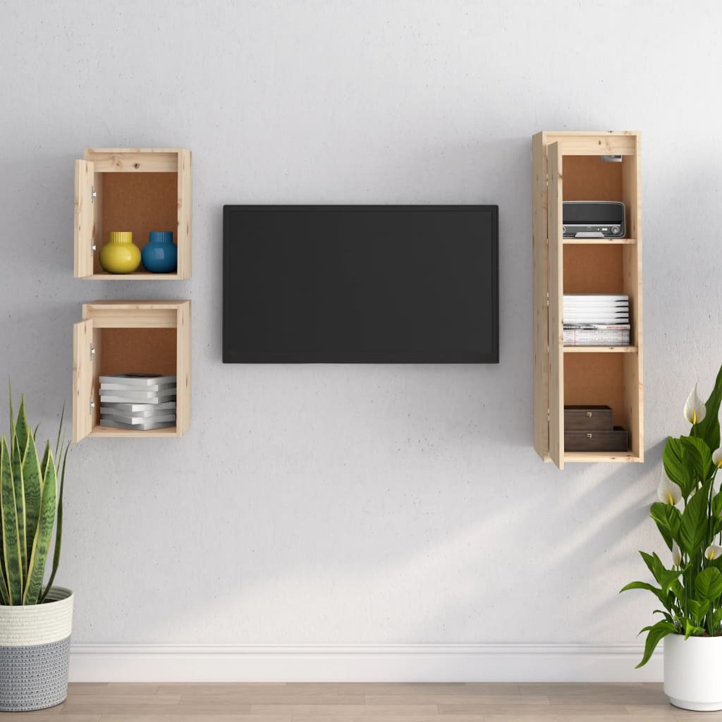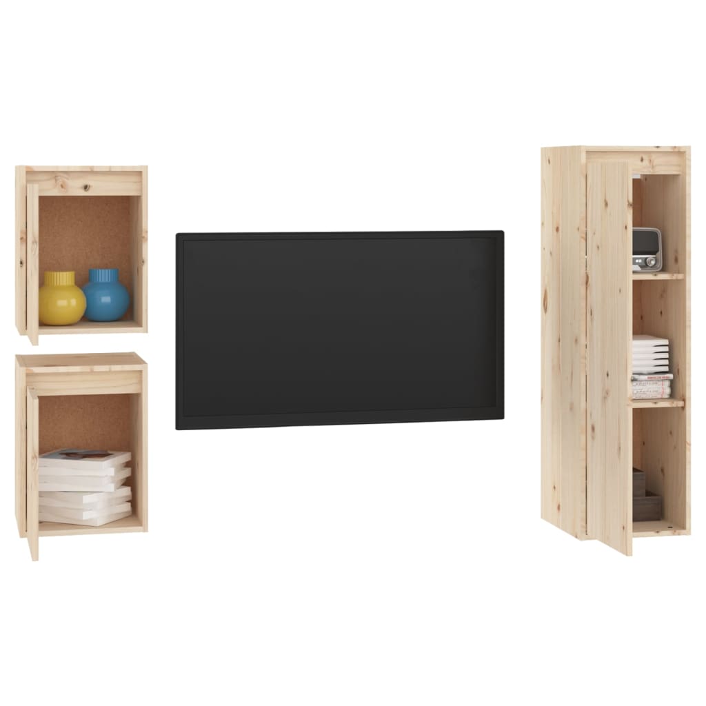 vidaXL Tv-meubelen 3 st massief grenenhout wit