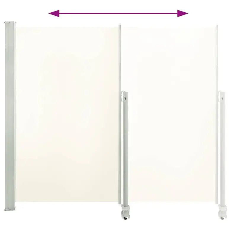 Het scherm is gemaakt van uv- en scheurbestendig polyester. De cassette is gemonteerd op een stevige ijzeren voet in verticale positie en de uittrekbare luifel kan eenvoudig recht uit de cassette worden getrokken. Het windscherm heeft een automatische terugrolfunctie. Het scherm is eenvoudig te monteren.
