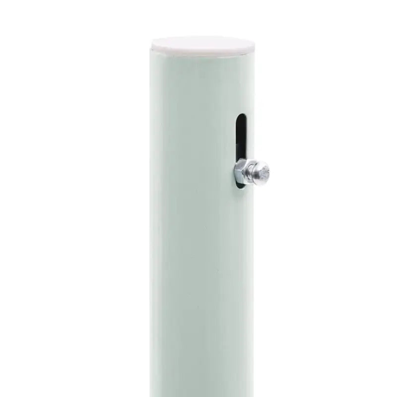 Het scherm is gemaakt van uv- en scheurbestendig polyester. De cassette is gemonteerd op een stevige stalen voet in verticale positie en het uittrekbare scherm kan eenvoudig recht uit de cassette worden getrokken. Het scherm heeft een automatische terugrolfunctie.
