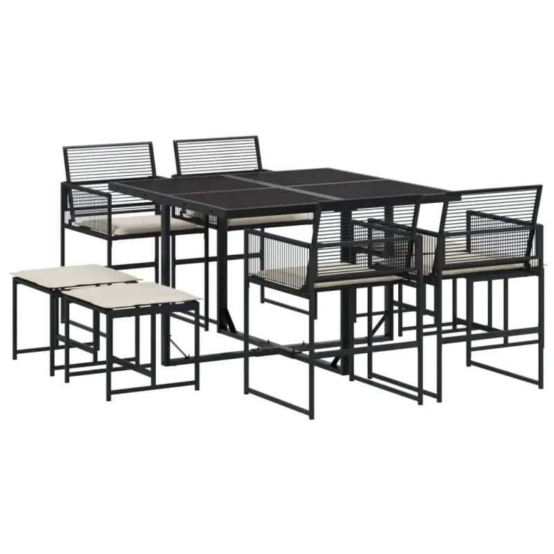 Zwarte tuinset van PE-rattan en gepoedercoat staal met ruime afmetingen