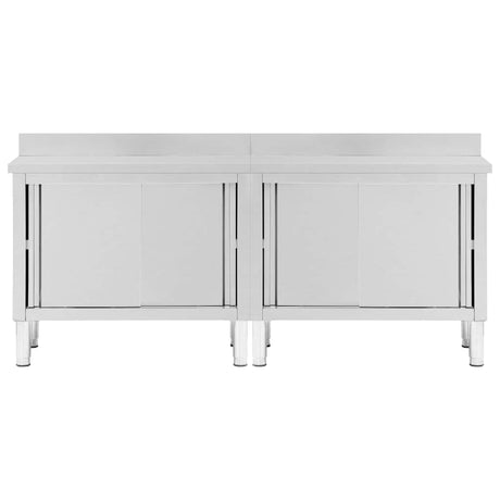 vidaXL Werktafels met deuren 2 st 200x50x(95-97) cm roestvrij staal